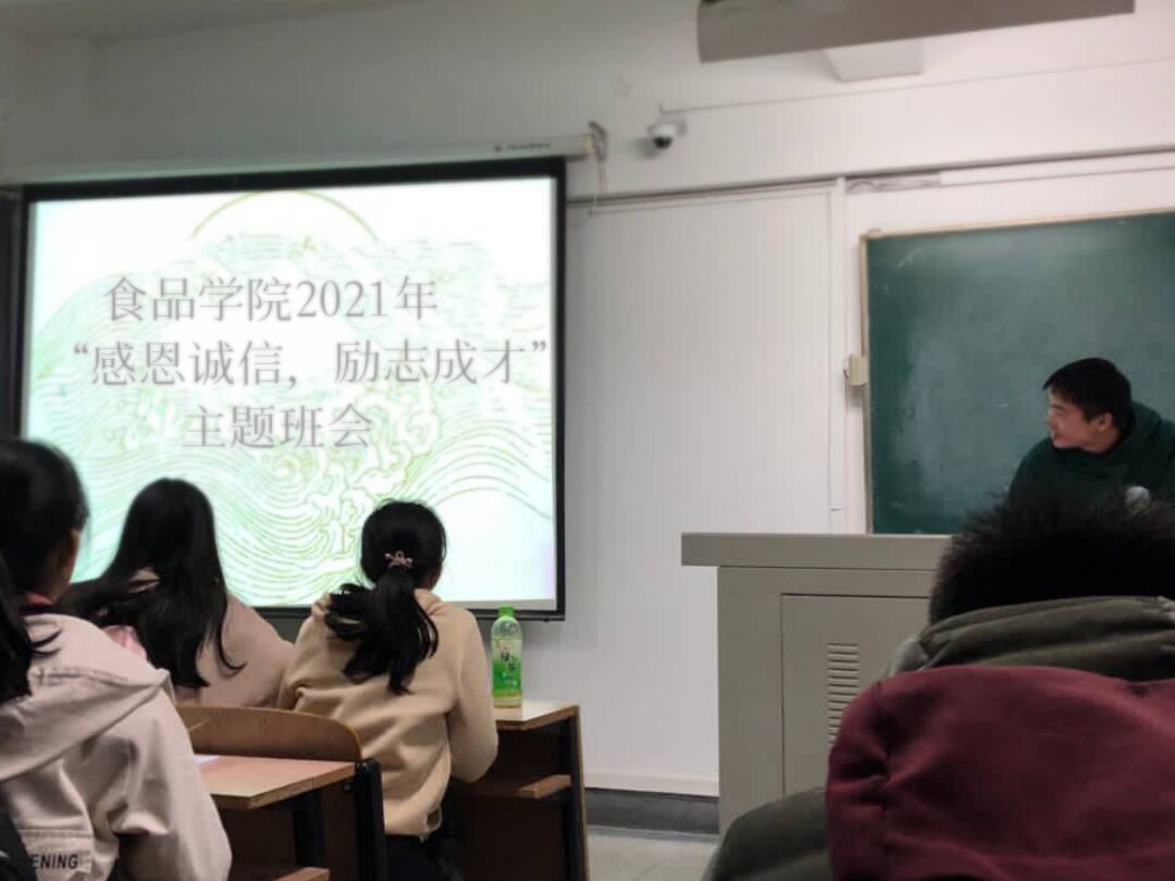 本次班会形式多样:获得国家励志奖学金、助学金的同学上台分享自己的学习经验和感恩之情,有的班级还以读书沙龙的形式开展了《有一种幸福叫感恩》这本书的阅读分享会。班会展现了18级员工不忘初心、励志成才的精神风貌,活动中一些得到国家助学金和御寒补助同学的感恩之情溢于言表,食工1806班冷雪萍同学在班会中发言道:“我们即将毕业,面对未来的人生道路,要怀着感恩的心去感谢生活所带来的挫折与磨难,要经常回头看看那些帮助过我们的人,要做一个懂得感恩、立志成才的人,不能辜负父母、老师、母校对我们的期待。”