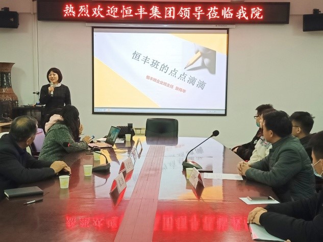 恒丰集团董事长魏建功向与会师生介绍了恒丰集团多年来的发展历程,重点介绍了海南恒丰公司在海南自贸区的发展定位,希望年轻人把个人未来发展与国家战略的发展紧密结合,期待一些有文化、有技术、有知识、有素养的新生力量加入集团。