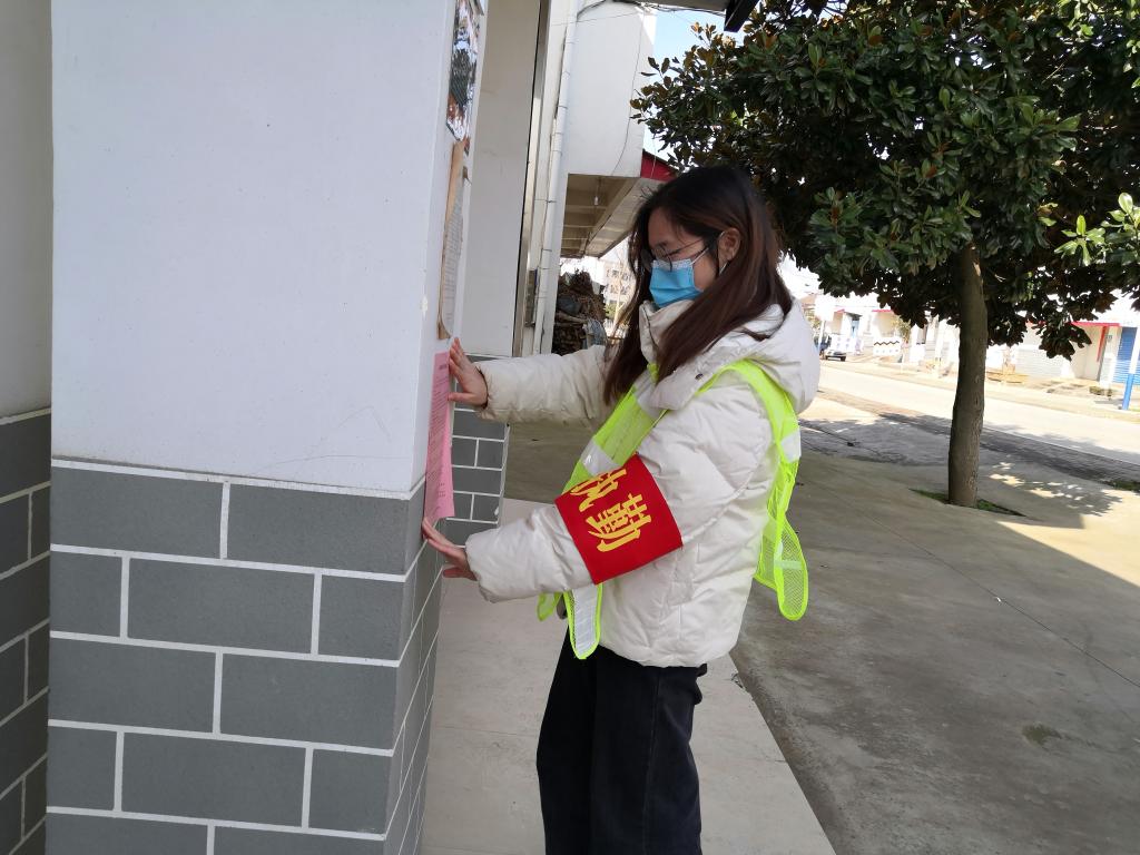 来自食品1904团支部的刘欢晴,她在寒假期间积极参加了湖北省黄冈市红安县七里坪镇张家湾村居委会的疫情防控宣传,调查登记返乡人员并劝导高风险地区人员尽量不回家过年志愿服务活动。年前跟着村干部一起挨家挨户询问情况,有些家庭在外打工,她们也一一致电询问过年返乡情况。这次志愿活动也令她颇有感悟: “奉献真的能带来许多欢乐,让我感觉到了自我的存在与存在的意义。在未来,我们应当更多的去帮忙他人,做更多的志愿服务活动,它会让我们的生活更有意义,更有价值。与此同时,也让我们的精神世界得到了满足。”