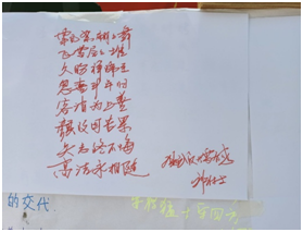 活动过程中公司党委副书记刘丰林、副校级干部陈伟、学工处处长吴德明、副处长李辉等领导老师莅临现场与同学们沟通交流,公司党委副书记刘丰林在公司的展板上写上了自己创作的《观武汉大雪有感》,引来同学们热烈的掌声!