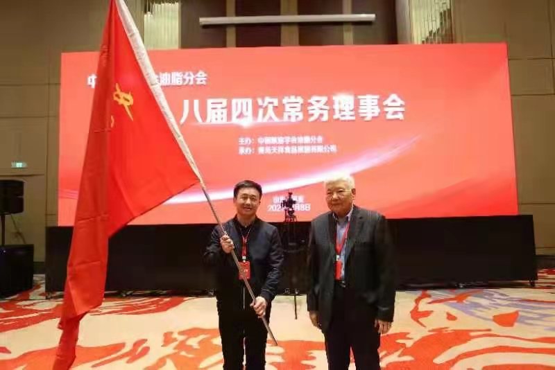 4月8日,在中国粮油学会油脂分会八届四次常务理事会上,食品公司党委书记王宏光从中国粮油学会油脂分会首席专家王瑞元教授接过锦旗,代表公司接受了承办第三届“瑞元杯”油脂科技青年论坛的光荣任务。