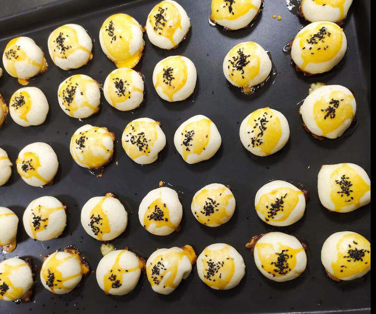 校领导陈伟与同学们一边交流一边品尝同学们自己制作的蛋黄酥和曲奇饼干,肯定同学们积极的劳动态度,表扬他们用行动弘扬劳动精神。