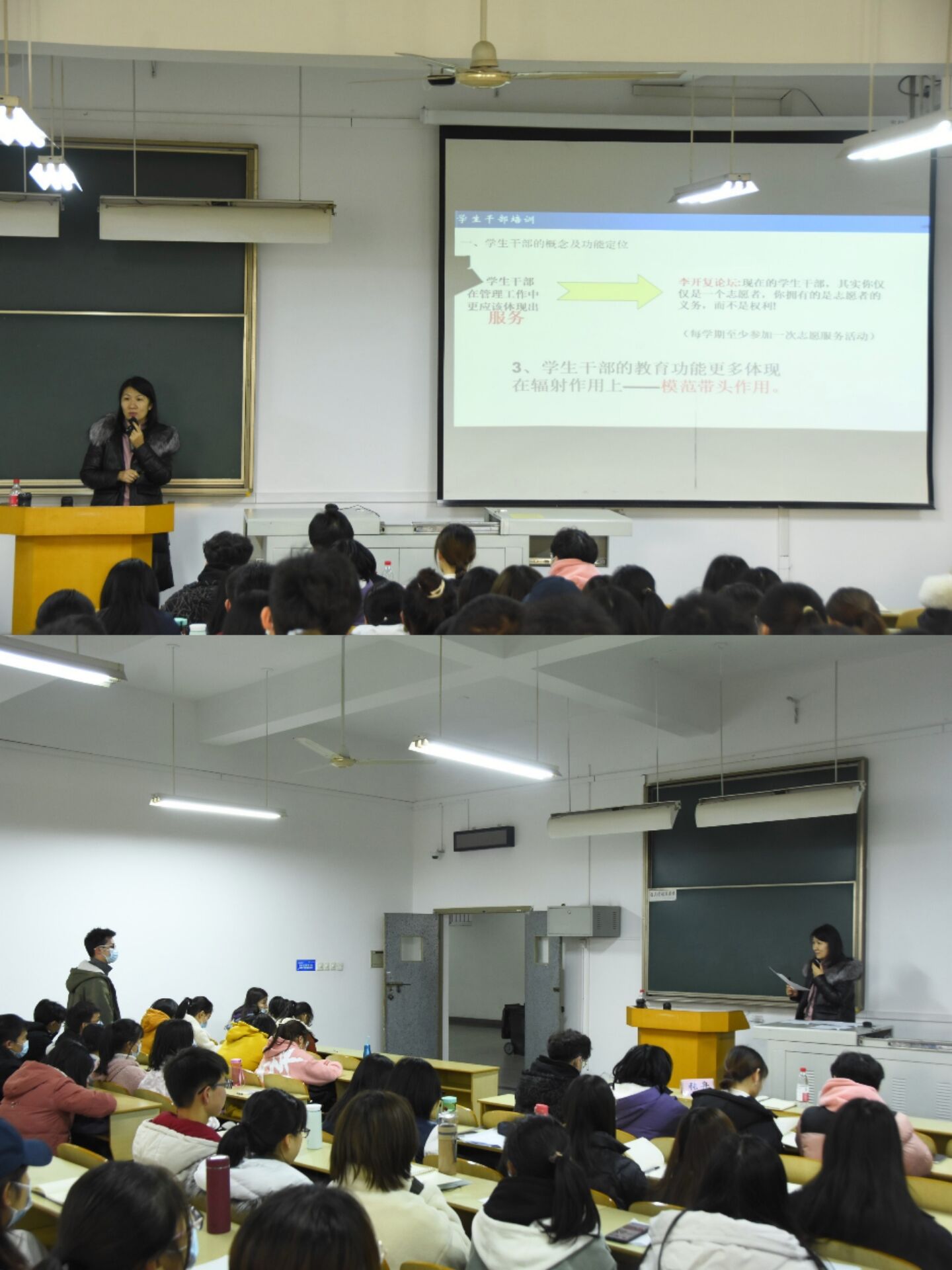 王欣书记从三个方面对员工工作作出指导:员工干部的概念功能及定位、存在的问题与员工干部执行力。她指出:员工干部要学会读书、学会做事、学会做人,要有具备独立地面对各种困难的能力,做事时要有服务意识、执行力要强,要团体协作、不服输,更要找到自己所在的位置,认识自己所起的作用。作为老师的助手和联络员,参与员工工作;作为同学的领头羊和服务员,带动和服务同学;以学业为主,做全面发展的践行者和示范者。争对员工工作中目前存在的问题,书记积极鼓励员工发言提意见,博采众议,群策群力,共同想出了改进意见。最后,王欣书记最后用一个挂横幅的例子,让员工工作者们深刻理解到执行力的重要性,并给出几点建议和期望:提高政治站位、改进工作作风、加强自身内涵建设、进一步提高创新能力和水平,更强调员工工作者一定要有责任感。希望员工工作者们平时多抢重担挑,培养任劳任怨的性格;善于总结反省;用脑工作;把做人与做事统一好。