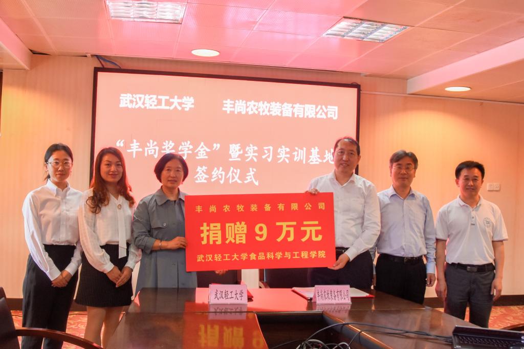 2021年5月20日,beat365官网中文“丰尚奖学金”暨实习实训基地签约仪式在食品科技楼二楼会议室圆满召开。丰尚农牧装备有限公司副总裁李向东、组织与人才发展经理葛凤洁、招聘经理赵世萍、公司员工办主任滕红华、食品公司党委书记王宏光、经理丁文平及辅导员牟星共同出席了本次活动。