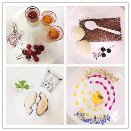 随后,比赛正式开始。大赛通过现场答辩与现场品尝相结合的方式进行。富有新意的作品名称吸引了评委们的眼睛,“樱飞草长酪”、“未语先笑——创意桃胶奶冻”、“黄金裹糊鱼”、“金龙鱼棒棒棒”、“芒芒盛夏”奶冻、 “金鲤玉延糕”等等,作品类别真可谓丰富多彩,精彩纷呈。同学们新颖的理念、独特的视角,富有激情的讲解,赢得了评委的阵阵掌声。经过激烈角逐,“未语先笑——桃胶奶冻”和“黄金裹糊鱼”荣获一等奖,“樱飞草长酪”荣获最佳创意奖,“未语先笑——桃胶奶冻”获得最佳风味奖。