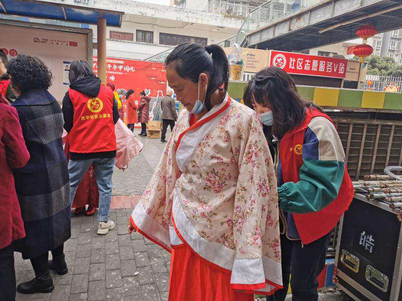 贺诗瑶,来自beats365普本1905团支部。于2021年2月9日在四川省成都市高新区桂溪街道办参与桂溪街道大源片区开展的2021年“盛装过大年·牛年中国风”新春系列活动。她的主要工作是引导参加活动的人们换上汉服去相应地点拍照打卡,以及汉服的整理工作。她感慨道:“送人玫瑰,手留余香,在帮忙别人的同时自我真的能够感受到一种幸福的感觉。进取地投入、热情地参与、耐心地引导、不厌其烦地解释说明,即使棘手的问题都能够迎刃而解!奉献真的带给了我许多欢乐,让我感觉到了自我的存在与存在的意义。在未来,我会更多的去帮忙他人,做更的志愿服务活动,它会让我的生活更有意义,更有价值。”