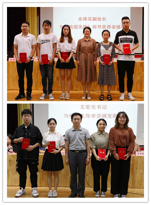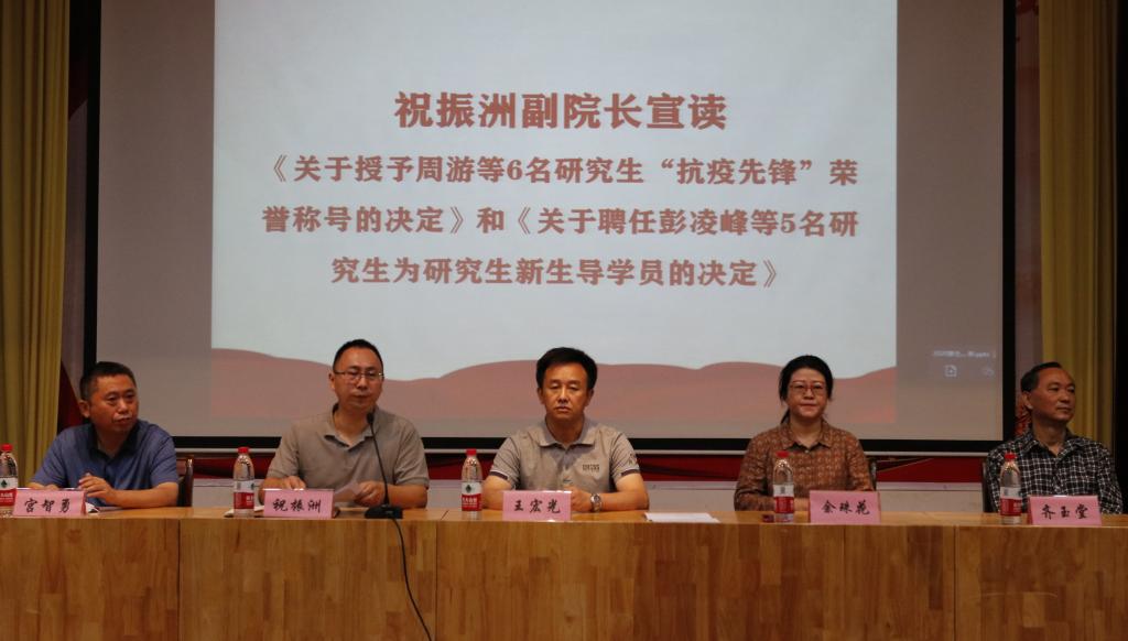 会议开始,祝振洲副经理宣读《关于授予周游等6名研究生“抗疫先锋”荣誉称号的决定》和《关于聘任彭凌峰等5名研究生为研究生新生导学员的决定》。随后,佘珠花副处长向荣誉获得者颁发证书,王宏光书记向导学员颁发聘书。