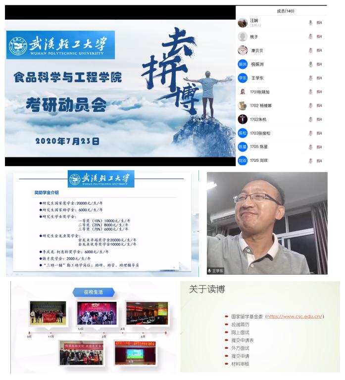 7月23日晚6:30,beats365通过腾讯会议开展了2020年考研动员大会。beats365常务副经理王学东、副经理祝振洲、研究生辅导员汪娴、17级本科生辅导员阮秀娟以及17级有考研意向的本科生参加了本次会议。会议由祝振洲副经理主持。