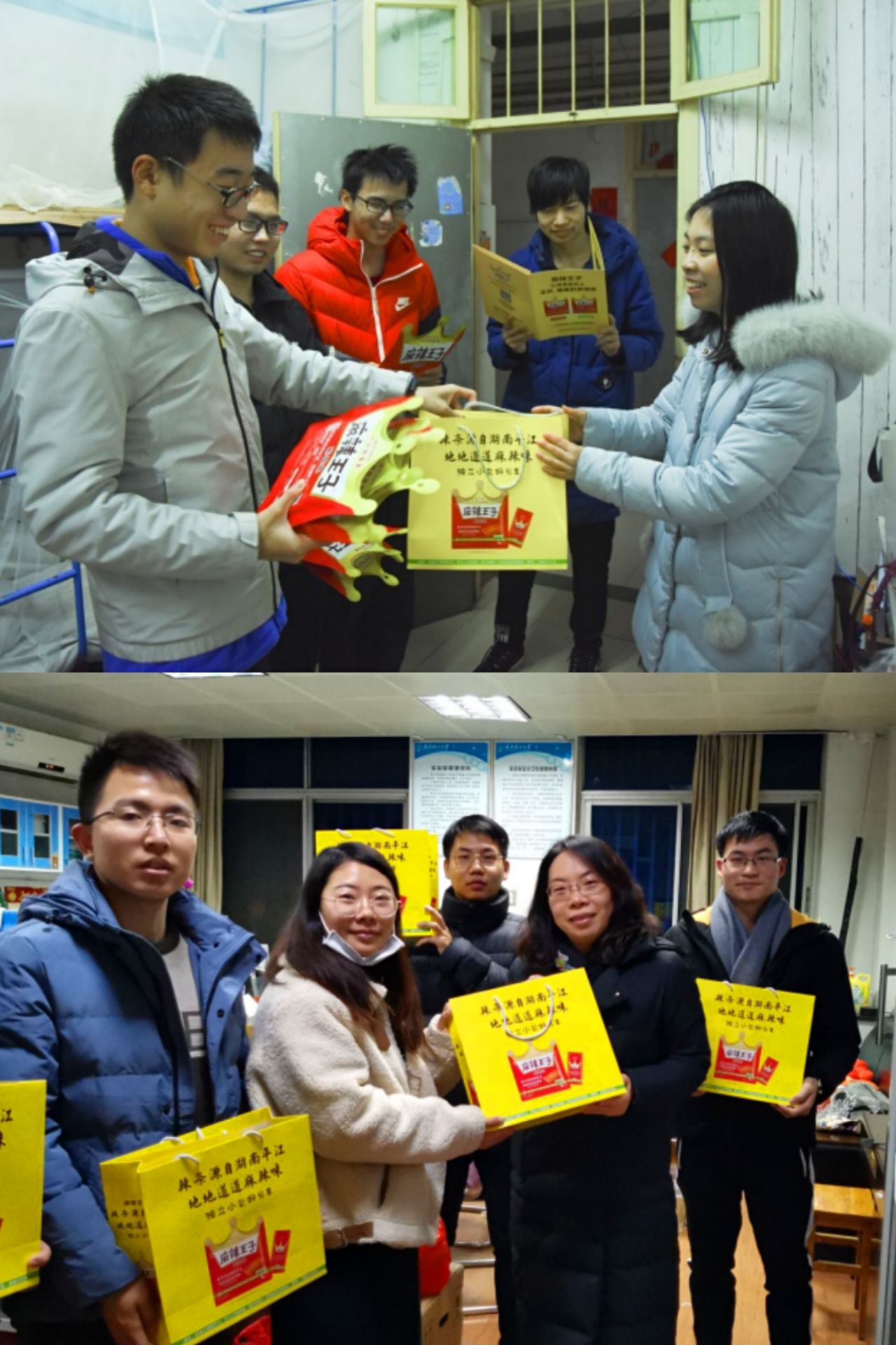 1月6日上午9点,公司荣誉员工,“李庆龙·柯惠玲奖助基金”第一届理事会理事长,湖南省玉峰食品实业有限公司董事长张玉东先生委托企业负责人向公司beats365师生送来了新年的问候与祝福,并将“麻辣王子”系列产品分发给老师和同学们品尝。