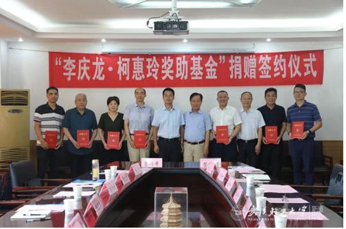 7月3日下午,“李庆龙·柯惠玲奖助基金”(以下简称“基金”)捐赠签约仪式在行政楼第四会议室举行。董事长王志勇出席捐赠仪式并致辞,“基金”发起人李庆龙教授与湖南省玉峰食品有限公司董事长张玉东、湖北洪森实业(集团)有限公司董事长洪传林、襄阳丰庆源面业股份有限公司董事长党长英、安徽正宇面业股份公司董事长曹云宇、湖北美玉面业有限公司总经理董纯清、广州卓铸网络科技有限公司董事长万力、深圳翼诚绿色食品有限公司董事长王进等企业代表共同出席。捐赠签约仪式由公司党委副书记刘丰林主持,社会资源处等有关职能部门、有关公司负责人参加了捐赠仪式。