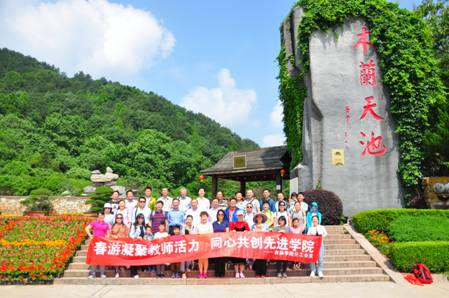 武汉木兰天池景区,位于武汉市黄陂区长轩岭镇石门山、木兰生态旅游区西部,东与木兰山、木兰湖毗邻,是国家 5A 级景区,也是国家森林公园。木兰天池,相传是木兰将军的外婆家,是木兰将军小时候生活、习武的地方。上午10点-12点老师们集中在景区门口合影留念,并依次参观十华里大峡谷、小天池、聪明泉、龙吟石、双龙池、道士椅、双龙井、三道门、龙脊沟、龙脊石、锁龙潭、龙须潭、打坐石、穿瀑崖等景点,最后抵达大天池边,一路上老师们欢声笑语,其乐融融,缓解压力、放松身心。