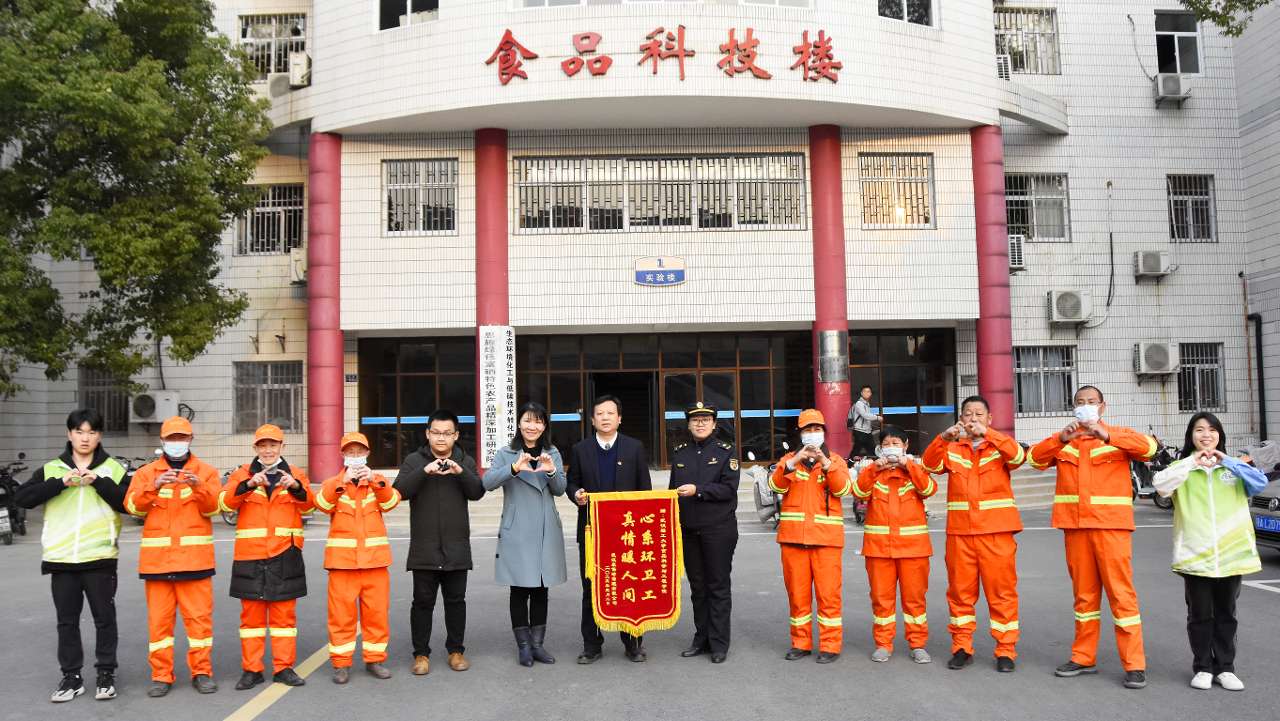 近日,在学雷锋纪念日之际,武汉市常青花园接受“爱心早餐”服务的7名环卫工人,在社区城管队队长的带领下,来到beat365官网中文beats365,当面向公司师生表示感谢,送上了写有“心系环卫工,真情暖人间”的锦旗,并举行了“爱心早餐”座谈会。