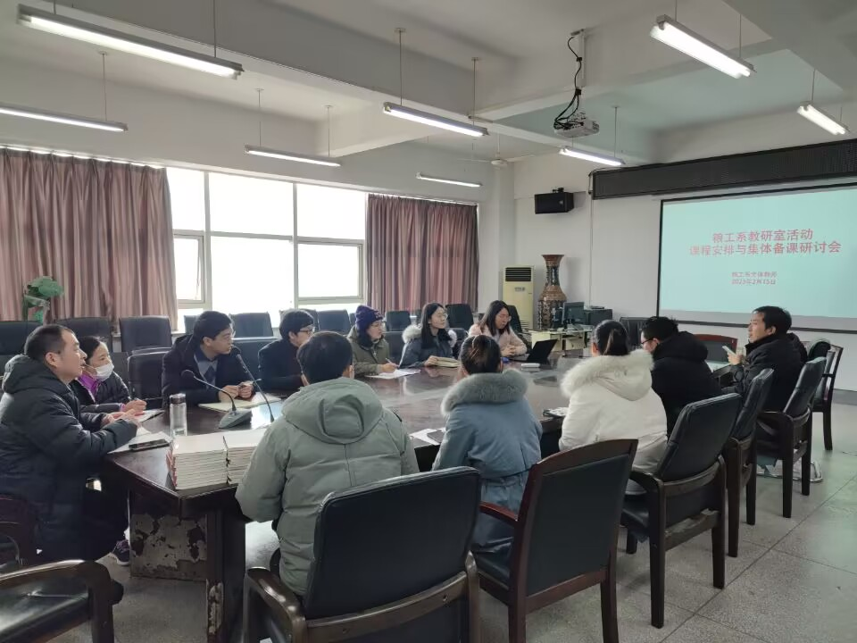 beats365粮食工程系于2023年2月15日下午2:00在科教楼809室开展教研室集体活动。本次活动主要包括三个方面内容:(1)开学初期的教学准备情况;(2)新进粮工系教师的课程安排情况摸查;(3)毕业实习安排及备课。系主任刘刚,系党支部书记王国珍,及其他全体粮工系教师参加。
