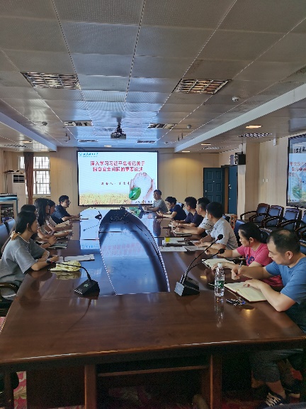 7月3日,食品科技楼二楼会议室,粮工支部13名党员同志认真聆听丁文平经理讲党课,深入学习习近平总书记关于粮食安全问题的重要论述,并就主题教育期间支部工作进行了广泛讨论。活动主持人为粮工系党支部书记王国珍副教授。