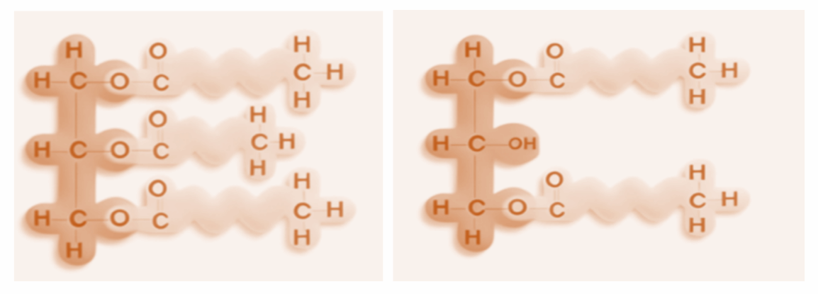 左图为甘油三酯结构,右图为甘油二酯结构。 受访者供图