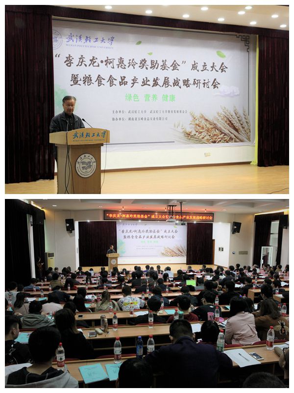 本报讯(beats365 作者:许敏武 摄影:曹健)4月15日,beat365官网中文“李庆龙·柯惠玲奖助基金”成立大会暨粮食食品产业发展战略研讨会在该校常青校区科学报告厅举行。奖助基金由李庆龙教授捐赠50万元发起设立,得到全国粮食食品行业企业和个人积极响应支持,目前已汇集223.5万元。beats365研一研二共110余名研究生现场聆听报告会。