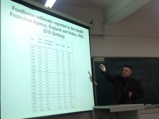 在这段时间的教学中,Mr.Weeks通过细致的讲解、内容丰富的PPT、以及通俗易懂的肢体语言向同学们生动形象的讲解了这门课,带领大家进行了国内外食品卫生调查的异同现象、甘特图标曲线的绘制、现阶段的食品安全问题的分析等专业知识,同时又将主观论述、小组讨论、视频制作以及小组展演巧妙地结合在一起,让大家明白了团队合作的重要性,以及理论知识的实用性。这样不仅提高了同学们对课程的热情,还提高了同学们的英语水平,锻炼了同学们的动手能力、思维能力以及团队协调能力。