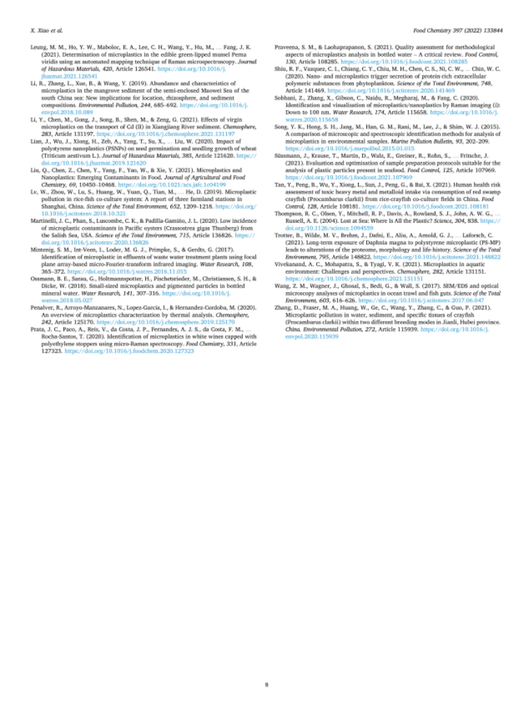 塑料为现代人类生活提供了极大的便利,但安全问题不容忽视。众所周知,微塑性可能是当今土壤和水系统中数量最多的塑料碎片,饲养环境中积累的微塑料通过摄食和呼吸行为进入水生生物,这可能对单个水生生物造成损害,例如引起炎症、应激反应、生殖和发育毒性,并改变肠道微生物组成和功能。更令人担忧的是,当这些水生生物被用作食物来源时,可能会对食物链产生负面影响。