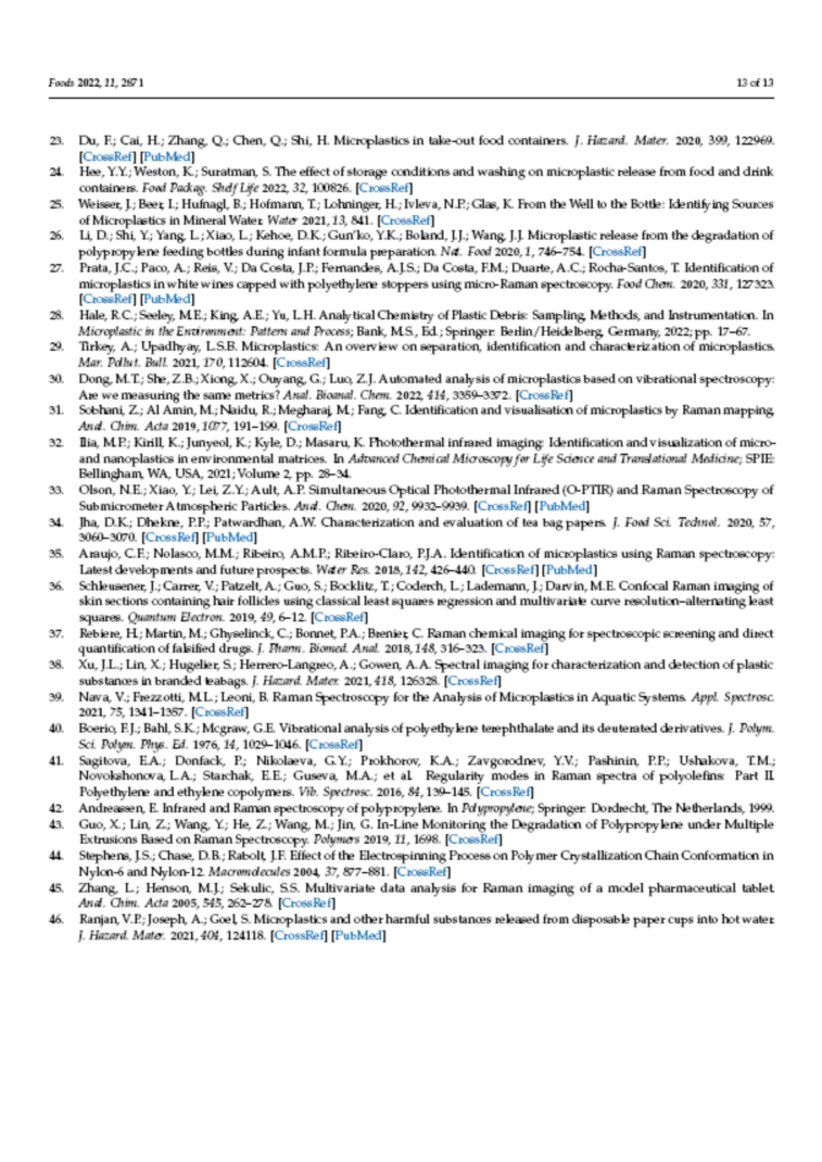 微塑料(MP)污染是环境和人类健康的公共问题。基于塑料的食品过滤袋,包括聚对苯二甲酸乙二醇酯、聚丙烯、尼龙6 (NY6)和聚乙烯,被广泛用于软饮料分装,增加了食品和环境中 MPs 的风险。收集了三种市售过滤袋,包括无纺布和编织袋,并使用拉曼成像结合化学计量学对浸泡后释放的MPs进行了映射。与单个特征峰的峰面积成像相比,拉曼成像结合直接经典最小二乘计算对于MP特征的识别更加有效和可靠。高达94%的袋子在浸泡后释放MPs,与浸泡条件无显着相关性。大多数MPs是微小的碎片和颗粒,少数是大小为 620-840μm的纤维状MPs。编织的NY6过滤袋释放MP的风险最低。过滤袋的来源探索表明,大多数MPs来源于吸附在袋子和绳子表面的碎片和颗粒。本研究结果适用于滤袋风险评估,为食品中MPs的监管提供科学指导。