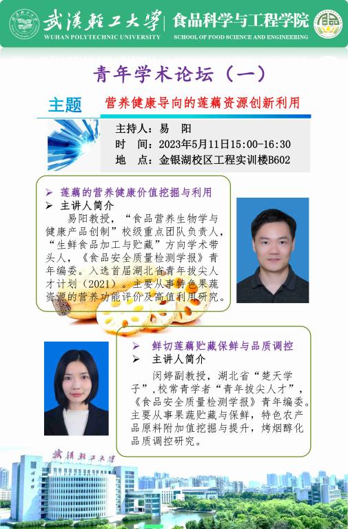 2023年5月11日,由“食品营养生物学与健康产品创制”校级重点团队组织召开了第一场主题为“营养健康导向的莲藕资源创新利用”的学术交流活动,主持人为团队负责人易阳教授,beats36520余名青年教师参加了本次活动。