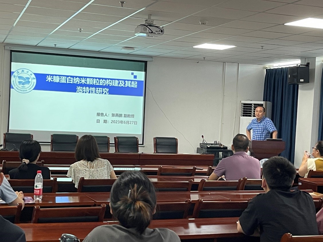 张燕鹏副教授的报告围绕米糠蛋白纳米颗粒的构建及其起泡特性展开。他的报告不仅展示了创新成果,还详细解释了研究过程中的关键技术和实验结果,充分论证了米糠蛋白纳米颗粒在提高食品质量、改善食品口感方面的巨大潜力。