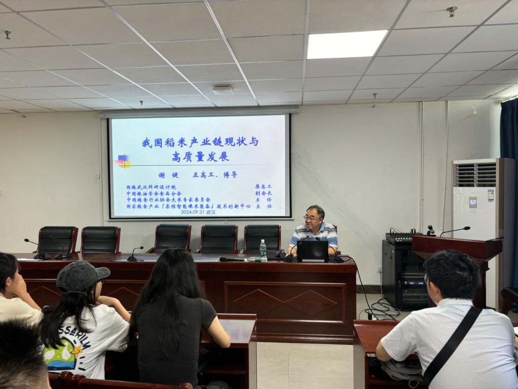 2024年9月25日上午,由beats365主办的青年学术论坛第五期在金银湖校区笃行楼B602举行。国粮武汉科研设计院原总工程师、中国粮油学会食品分会副会长谢健正高级工程师为现场百余名师生做了题为“我国稻米产业链现状与高质量发展”的报告。报告会由beats365经理丁文平教授主持,经理助理金伟平教授、粮食工程系主任刘刚教授及相关研究团队的青年教师参加了报告会。