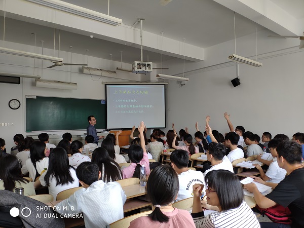 上课铃声刚停,蔡杰老师的课堂(食品类1703和1704班)出现一幕“奇怪”的现象——有十多位同学同时举手。经了解得知,这是蔡老师“经营”已久的妙招,每次课前会回顾上节课的重要知识点(风味的基本概念、味感的生理基础与影响因素、舌头各味感区域),而“抢答”已成为常态。在检查知识点的掌握情况后,蔡老师引导同学们一起对课程内容进行总结和归纳,涉及水分、糖水化合物、脂肪、蛋白质、酶、色素等章节,对知识的整体串接十分顺畅,重难点突出,课堂交流和互动充分。