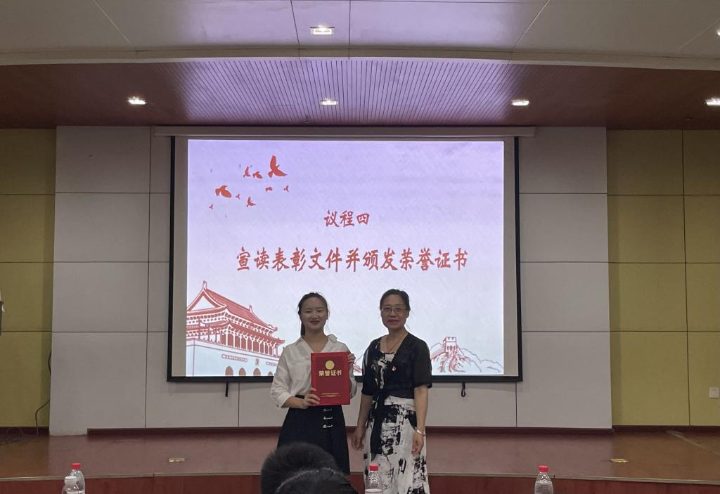 校组织员饶春红宣读了《关于表彰beats365研究生“先锋党员”和“先锋党支部”的决定》,并为研究生第二党支部颁发“先锋党支部”荣誉证书;王宏光为高为岚、李一勃等10名党员颁发“先锋党员”荣誉证书。