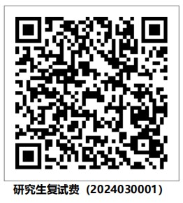 现场复试:考生使用微信扫描下示二维码缴费(注:缴费后,考生需保留并打印缴费单据凭证,与资格审查材料一并提交。)