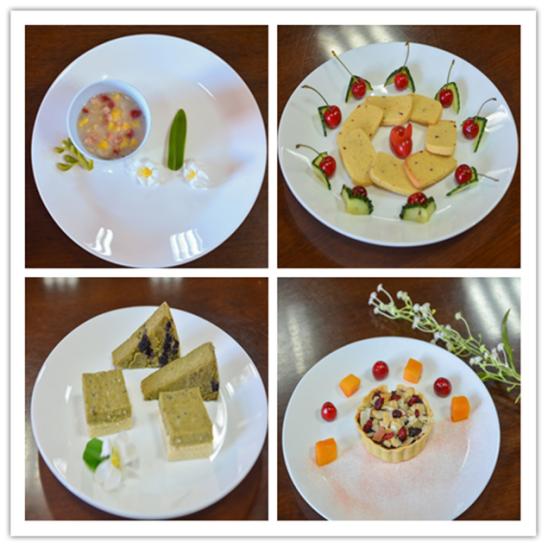 本次比赛采取PPT介绍、现场品尝与评委提问相结合的方式进行。每组选手都带着团队的得意之作而来,有“双鱼布丁”、“H&2系列软欧包”、“团子家族”、“”喜欢MI”营养代餐米稀”、“挤压膨化黑麦麸高纤维饼干”、“蒲夏”、“保腹派(Satiety Tart)”、“减盐富硒鸡肉干”、“舌尖上的华尔兹”、“”留”住你的胃”、“轻食多彩雪花酥”、“姜黄牛轧糖”等等,其作品真可谓丰富多彩,精彩纷呈。