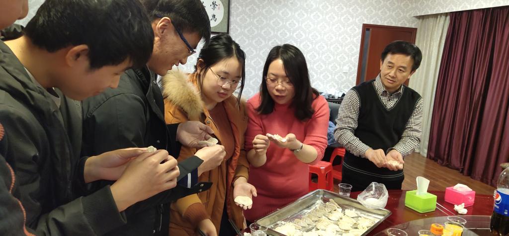冬至过节源于汉代,盛于唐宋,相沿至今。《清嘉录》甚至有“冬至大如年”之说。人们认为冬至是阴阳二气的自然转化,是上天赐予的福气。每年农历冬至这天,饺子是必不可少的节日饭。谚云:“十月一,冬至到家户户吃水饺。”晚上6点整,王宏光书记宣布活动正式开始,期间,同学们的热情高涨,王书记、汪老师也撸起袖子加入到包饺子阵营来,擀面皮、包饺子,随着老师同学们的努力,一个个形状各异的饺子做了出来,有圆的、有长的、有尖的、有扁的,千奇百怪,不会包的向会包的学习,渐渐也能熟练地包出来漂亮的饺子,大家都有说有笑,交流包饺子的经验,分享学习生活中的趣事,师生同乐的暖意沁人心脾。