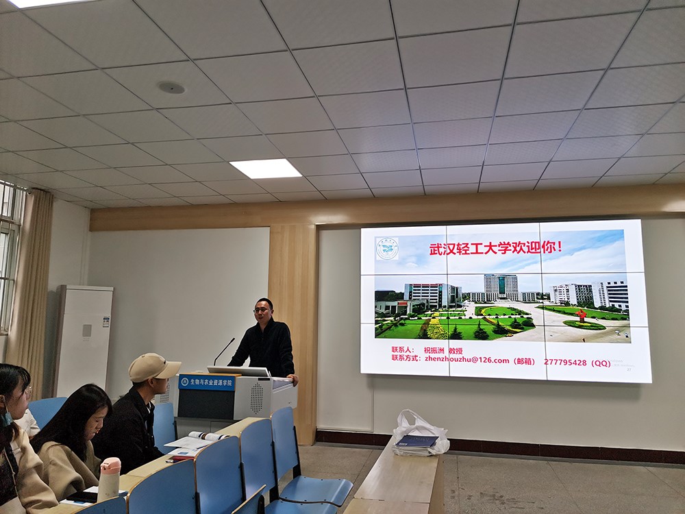 为进一步做好beats3652021年硕士研究生招生工作,吸引更多优秀学子报考公司,10月6日,公司副经理祝振洲教授、贺艳萍副教授、王飞飞博士等三人赴黄冈师范公司举行了硕士研究生招生宣讲。黄冈师范公司生物与农业资源公司肖云丽经理热情接待了公司招生小组,并组织公司2017级、2018级食品科学与工程和生物工程专业的本科生参加了此次招生宣讲会。