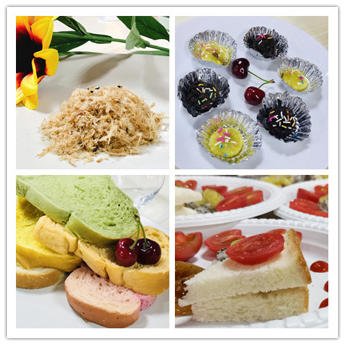 1.五彩鸡肉冰皮月饼 指导老师:丁文平 组长:黄雅琪 组员:史韬琦、赵兆钧