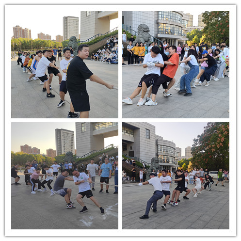 活动开始,随着主持人的一声哨响,比赛正式拉开帷幕。只见双方队员都抓紧了绳、涨红了脸、鼓足了劲,随着比赛进入胶着状态,双方队员已经筋疲力尽,但仍然咬紧牙关、全力以赴、坚持到底。赛场外,领导、老师和同学们自发组成啦啦队,“加油”声此起彼伏,震耳欲聋。此刻,师生融为一体,感受着团结的力量、享受着运动的快乐。