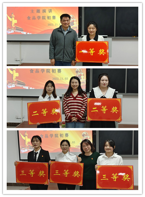 经过激烈角逐,一等奖由2021级食科2班朱国花夺魁,2021级食加1班裴娅敏、2021级食加2班王巧云荣获二等奖,2021级食加2班张寒、贾婵婵、王博雅荣获三等奖。