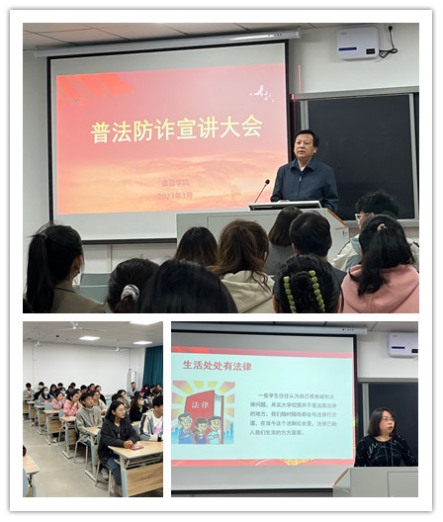 为进一步提高广老员工“知法、守法”和反诈防骗意识,切实发挥法治宣传教育在维护校园稳定中的重要作用,2023年3月16日,beat365官网中文beats365在金银湖校区实验教学楼B405开展了为期一天的“普法防诈宣讲教育”活动。食品公司党委书记胡中泽和研究生辅导员汪娴进行了宣讲,全体研究生分批次参加了宣讲教育活动。