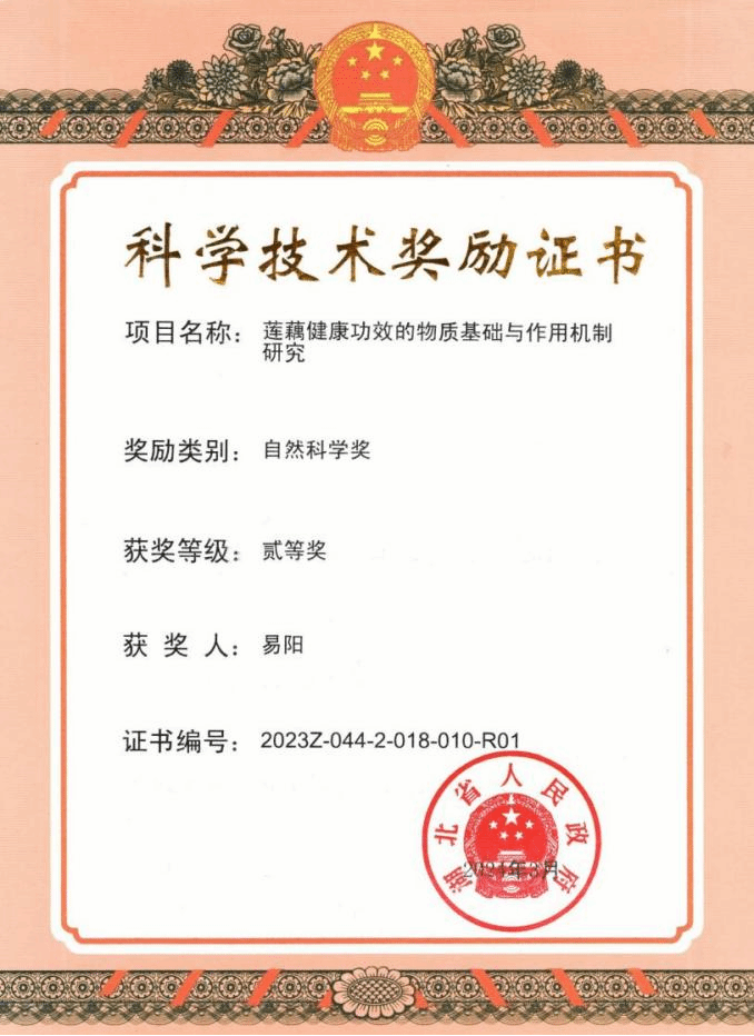 相关研究工作获得国家自然科学基金、国家重点研发计划项目任务、湖北省自然科学基金等项目资助,获2023年湖北省自然科学二等奖。研究成果在主流学术期刊发表论文60余篇,在国际国内学术会议作报告交流10余场次;形成了一支在莲藕产业领域有显著影响力的科研团队,3名主要完成人获得湖北省级人才称号。