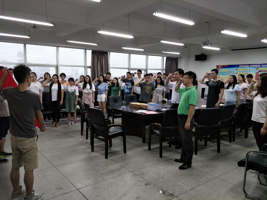 杜老师宣读了新党员名单,勉励大家再接再厉,用党员标准严格要求自己,持之以恒,努力学习、努力工作,不断发挥党员的先锋模范作用。随后,带领新党员面向党旗,庄严地进行了宣誓,并表示要随时准备为党和人民牺牲一切。