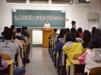 会议伊始,粮工1301班学员冯娅作为入党积极分子代表发言,她庄重许诺:在党课培训中,自己一定会做到按时上课,及时反馈,尊师重道,并且以全新的标准严格要求自己,不断的学习来完善自己,从思想上积极向党组织靠拢。