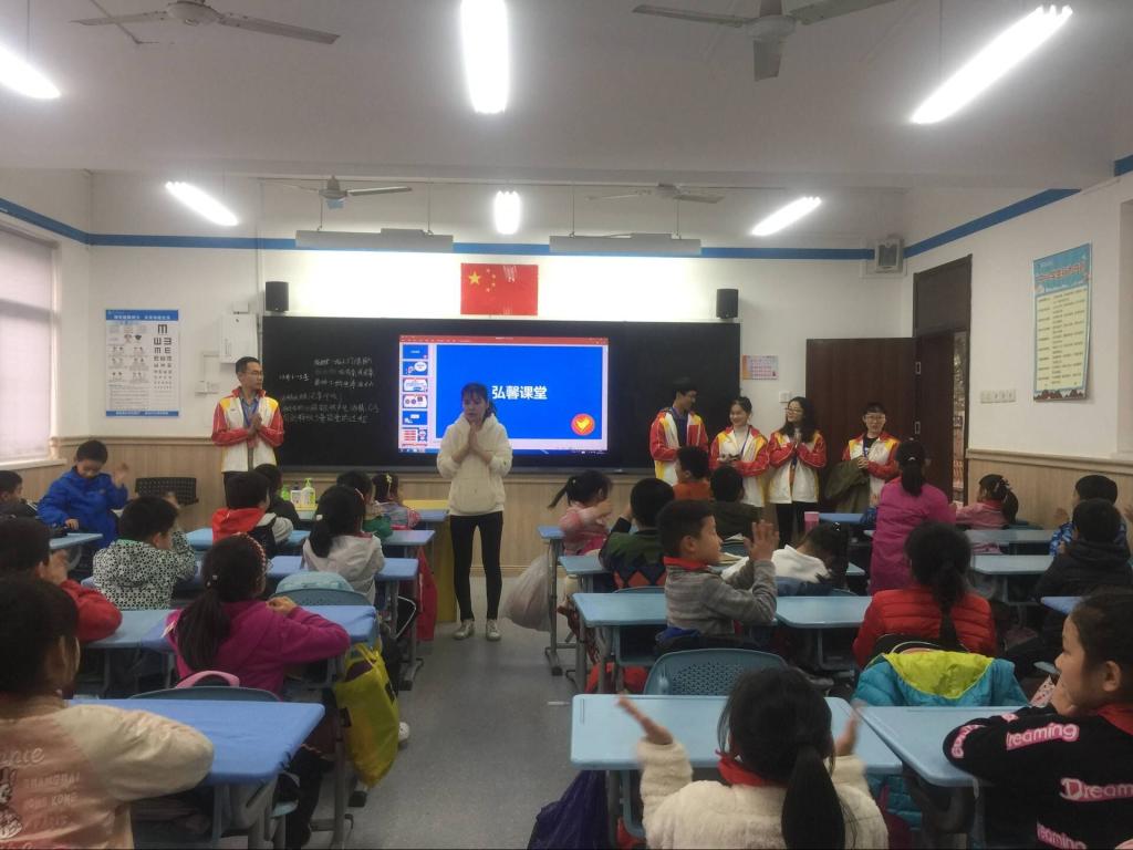 本报讯 为了强化老员工思想道德素质和志愿服务精神,创建和谐、文明、美丽校园,2018年11月30日,beats365弘馨伞团队五名志愿者(负责人王雨薇,组长陈贤锡、李博闻、李金梅、侯蕾,干事杨理枝)前往常青第一小学三(7)班开展“弘馨课堂”品牌系列实践课。李博闻担任本次主讲老师,其余志愿者为辅助老师。beats365学工办主任杜典初老师亲临课堂进行指导。