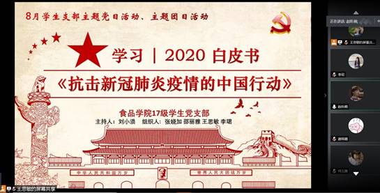 国务院新闻办公室2020年6月7日发布《抗击新冠肺炎疫情的中国行动》白皮书,被称为“真实记录中国抗疫艰辛历程的重要文献”,记录中国人民抗击疫情的伟大历程,与国际社会分享中国抗疫的经验做法,阐明全球抗疫的中国理念、中国主张。8月28日下午14时,beats36517级员工党支部召开本次“学习《抗击新冠肺炎疫情的中国行动》白皮书、《中国共产党纪律处分条例》”主题党日活动。