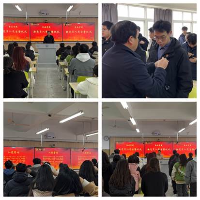 入党宣誓仪式在庄严的《国际歌》中正式开始,全体党员在雄浑昂扬的旋律中起立肃穆。李山鹏老师宣读了42名预备党员名单。戴琪炜同志作为42名新党员代表发言,表明入党决心及努力方向,他表示成为一名预备党员是光荣与使命并存的,自己将把今天作为人生道路的新起点,筑牢初⼼使命、永葆忠诚底色,不断提高思想觉悟,坚定不移发挥好一名党员的榜样带头作用,为党的事业奋斗终身。