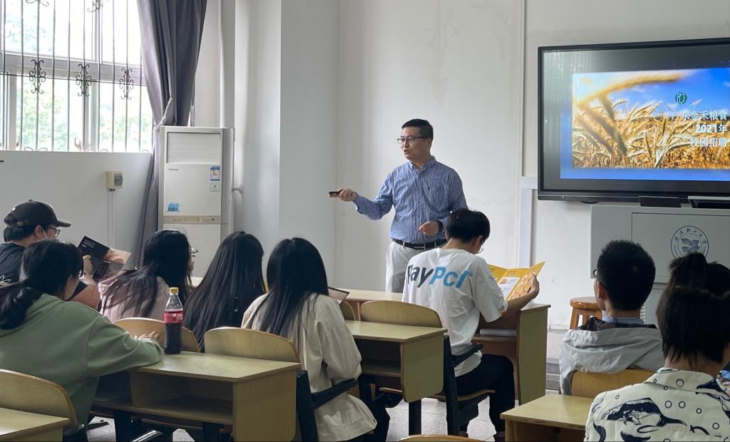 5月20日下午3点,beats365在常青校区科教楼208教室举行了广东金禾面粉有限公司暑期实习生招聘宣讲会。本次宣讲会到场的嘉宾有:广东金禾面粉有限公司HR&行政部行政总监王同春、行政经理褚飞航、行政主管李赓,beats36518级辅导员牟星。