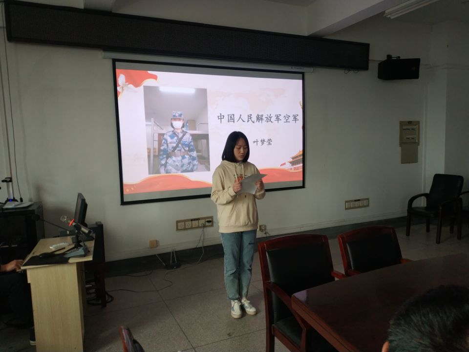 交流会上,退伍复学员工代表叶梦莹结合自身在部队的成长经历,与战友们分享了军旅生活的收获和体会。“五点起床,六点出操,七点开饭,八点出勤,十四点政治教育,十五点体能训练,这是我的18岁,也是我持续了731天,17520小时的军旅生涯。”——作为中国人民解放军空军中的一名女兵,她从一个柔弱害羞的小女生,经历了严格刻苦的训练、艰苦环境的磨砺,成长为队伍里排头扛着红旗跑得最稳、口号喊得最响亮的一名女战士。