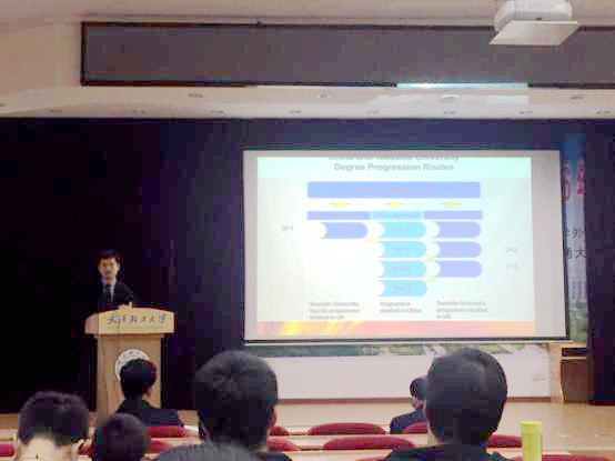 本次专题讲座侯亮老师详细的介绍了提赛德大学的课程设置、团队硬件、住宿环境、学习生活费用、入学要求等多方面内容,另外还介绍了近年来在提赛德大学就读的学长学姐的相关情况,让在场的同学们对提赛德大学和中外合作项目有了清晰的认识。