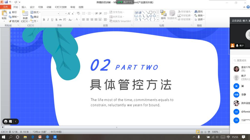 最后,阮老师列举了疫情期间违反防控法规的案例,并且结合了《中华人民共和国传染病防治法》中对于个人的要求为大家进行了知识普及,让同学们做到尊法守法。在会议的最后,阮老师提出了殷切期盼;“疫情之战还没有完全结束,防疫工作仍不能有半点松懈。我们一定要从个人做起,规范防控期间个人行为准则,做好疫情常态化准备,坚决打赢这场战争!”