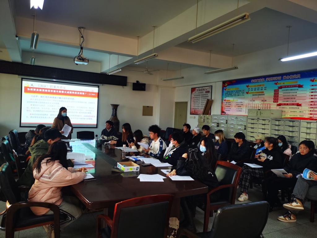 (文 张子涵)为深入学习贯彻党的十九届六中全会精神,20级全体团干于12月20日进行了深入细致的集中学习。会议由辅导员张子涵老师主持。