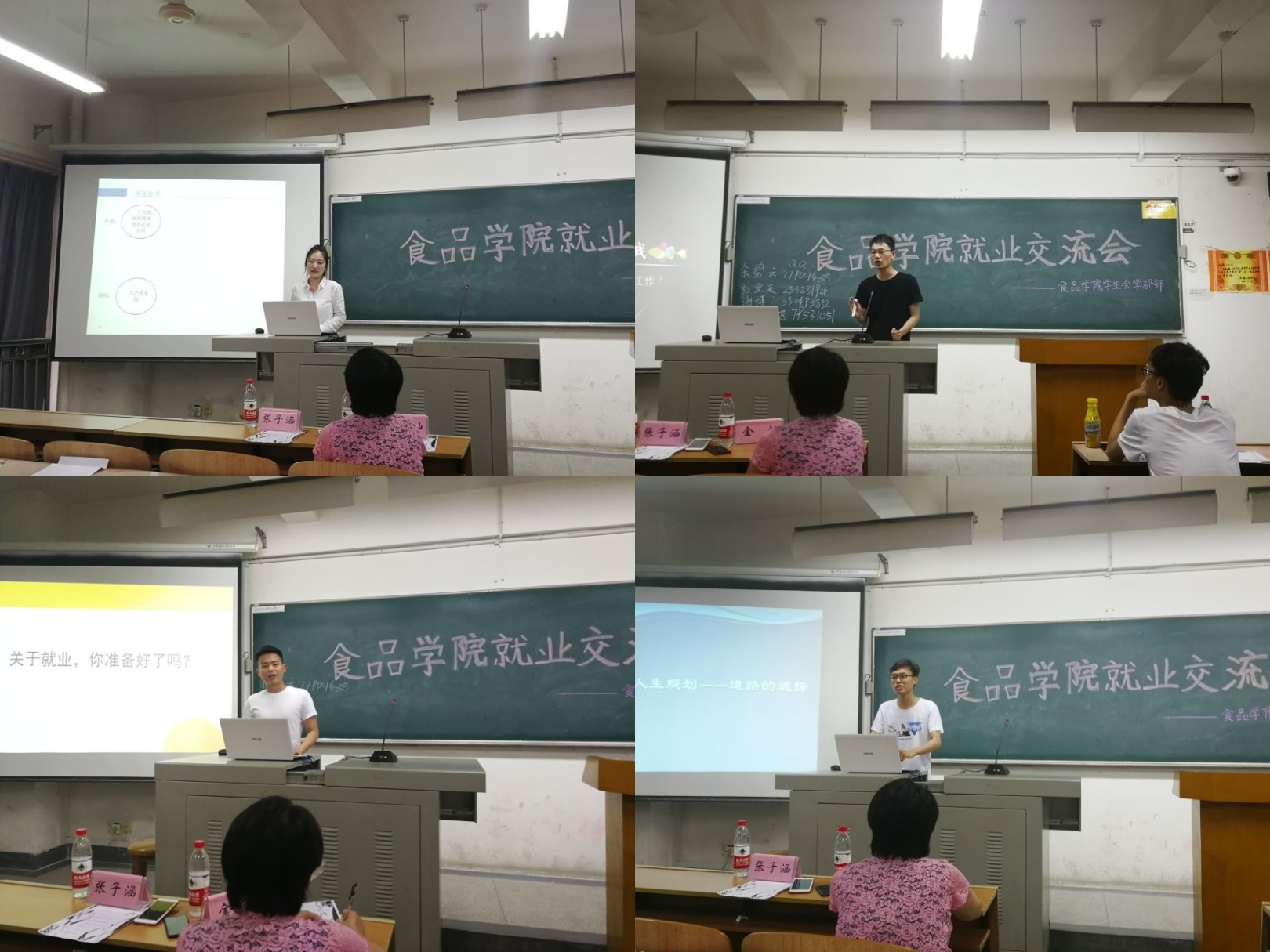 活动伊始,由学研部冷骁翔为同学们介绍近年食品专业的就业整体形势以及公司14级员工的就业情况,快速让在场同学们对当前的就业形势有了一个清晰的认识。会上余碧云学姐给同学们讲解了简历制作的注意事项并分享自己的面试经验并强调了“诚实、自信、谦虚,多看、多跑、多问、多面试”的重要性;刘宣辰学长和谢博学长分别为同学们深层剖析了如何寻找实习机会和提升自己的应聘能力。而萧晨易飞学长则另辟蹊径,从大学期间工作技能的提升进行分析,为同学们展示了自己的工作经验;他还表示找工作是一场持久战,必须注意个人的学习经验、能力和态度以及沟通技巧。最后,15级辅导员金灿老师对此进行总结,也希望在座同学能够吸取经验,以后找到称心的工作。