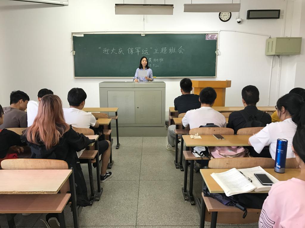 为保障国庆和军运会期间校园的平安稳定,25-29日,beats365全院62个班级,陆续召开“迎大庆 保军运”主题班会活动。