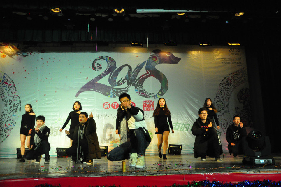 晚上六点半,四位主持人闪亮登场晚会正式开始。整个晚会以歌曲、舞蹈、相声等多种形式,动静结合,高潮迭起,为现场观众献上一场精彩绝伦的视听盛宴。晚会在艺术团精彩的开场街舞和观众的欢呼声中拉开了序幕,调动了全场热烈的氛围。首先,一首由landing乐队带来的《关键是飘向北方的春风》带着北方同学对家的思念飘向远方;艺术团带来的小品《闹元旦》和齐创张旭斌带来的相声《瞧这一家子》则是诙谐幽默,捧逗佳具,妙语连珠;艺术团礼仪组声乐组为我们带来潇洒霸气而不失时尚的走秀;动漫社二次元妹子们带来的宅舞《love live》震撼全场,观众们掌声欢呼声此起彼伏。